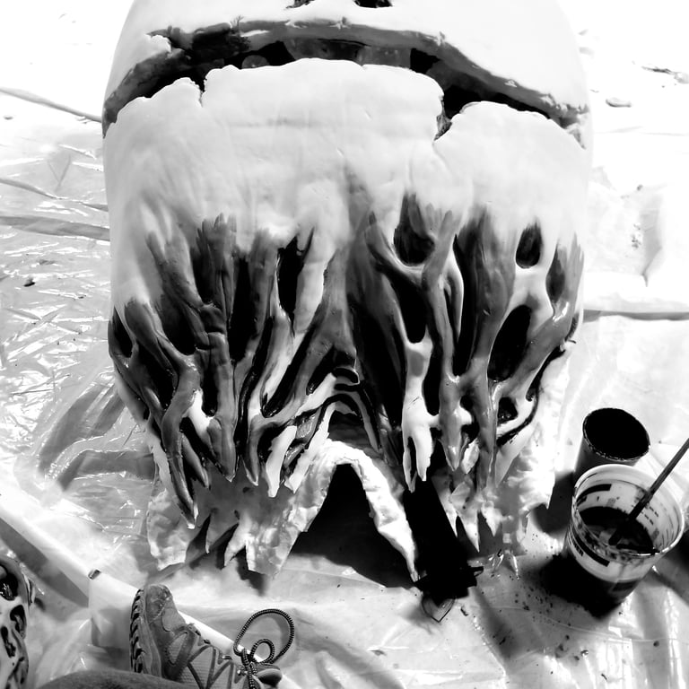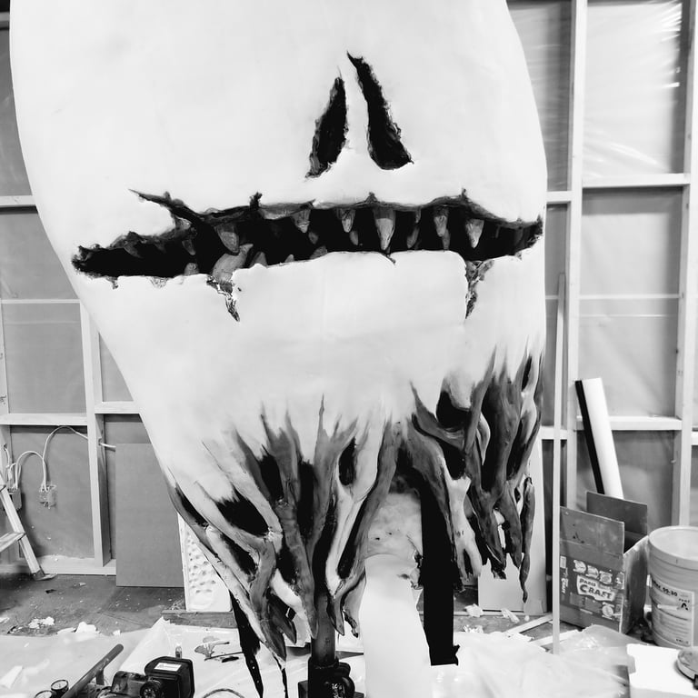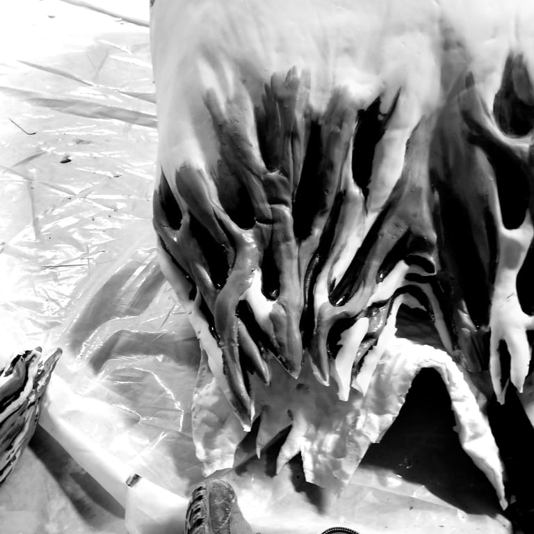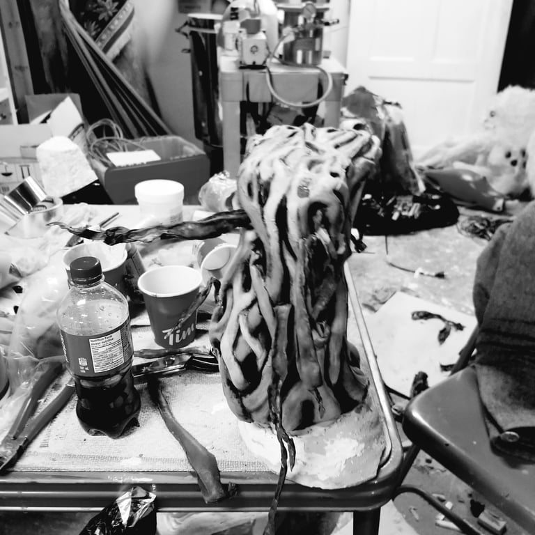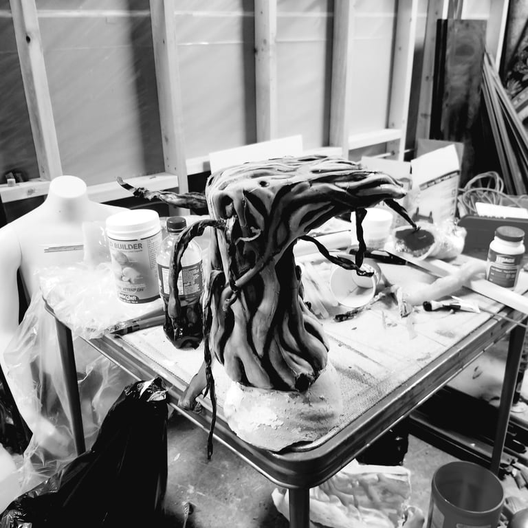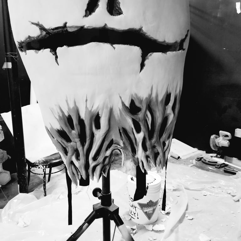 Casting puppet and painting- everything being value checked in black and white